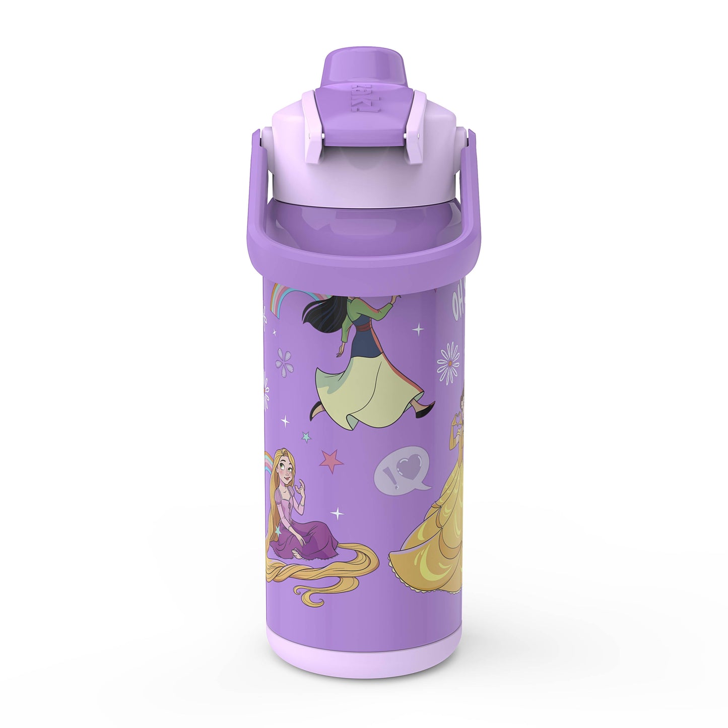Zak Designs 20oz Princess Kids Straw Water Bottle, Stainless Steel Vacuum Insulated Liberty Bottle with Easy-Open Locking Spout Cover for Travel, Built in Carry Handle