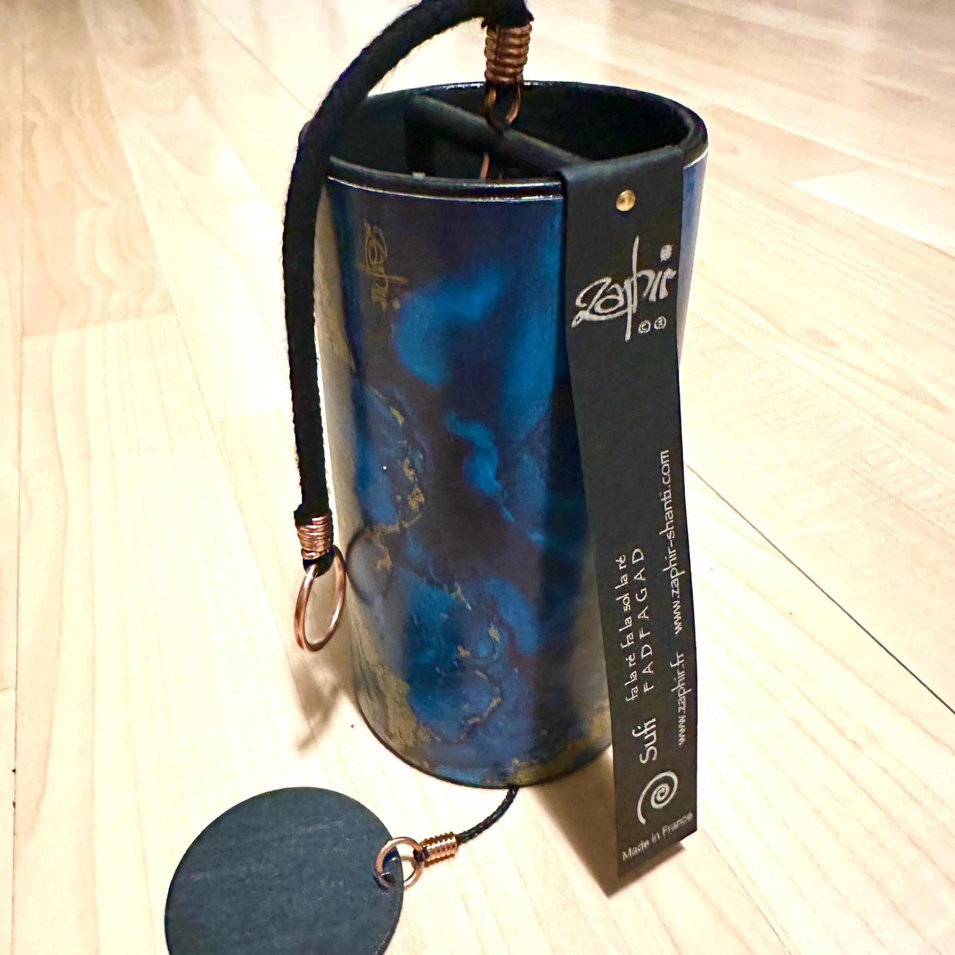 Zaphir Chimes are made in France. Zaphirs come in a variety of colors so we've chosen this royal blue to be our D-minor chime.